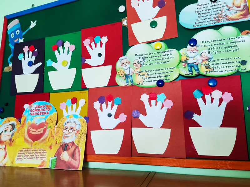 1 октября в нашей стране отмечается один из самых замечательных и очень душевных праздников – "Международный день пожилых людей". Самые добрые, заботливые и понимающие детей близкие люди, без участия которых зачастую ни одно детство не может считаться полным, наиболее ярким и запоминающимся. Такой день в детском саду очень важен, так как этот праздник является дополнительной возможностью воспитывать у детей любовь и уважение к старшему поколению, формирует понимание о том, что старшее поколение нуждается в нашей любви, заботе и внимания. 1 октября в детском саду был проведен тематический день, посвященный Международному дню пожилых людей. Воспитанники совместно с педагогами изготовили поделки для бабушек и дедушек, оформили выставку поздравлений.